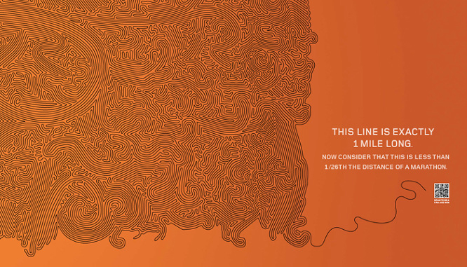 Asics has been a sponsor for the New York City Marathon for many years. This particular year we took over the 59th St. Columbus Circle Subway Station under Times Square, creating a number of engagements to reinforce the feeling of accomplishment and to add more fuel to the pre-race anticipation for the runners. For the spectators and general audience, we wanted to evoke a higher sense of understanding of how great an achievement running a marathon is by expressing pace and distance in interesting ways.