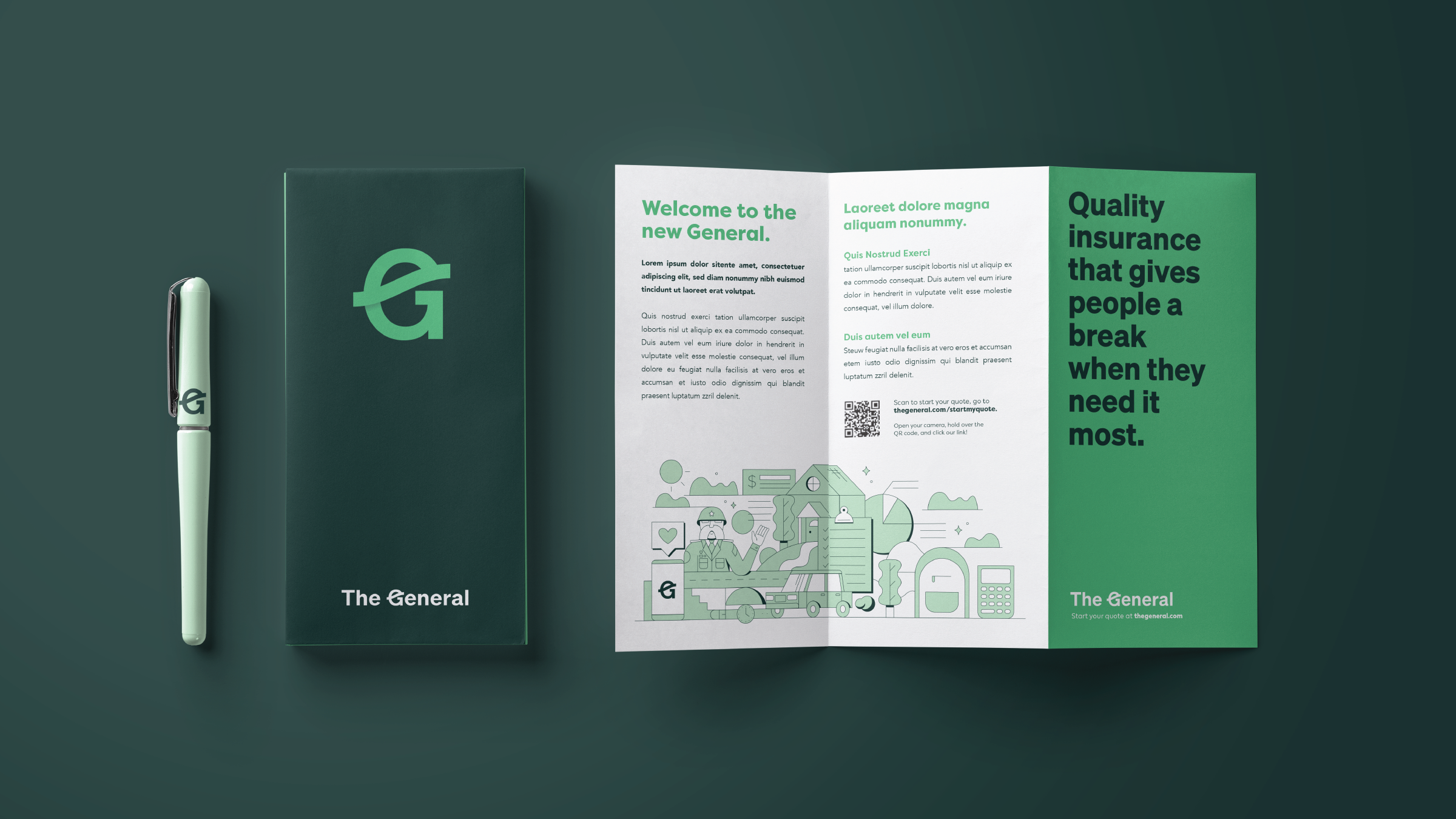 We were enlisted by Highdive to reimagine the visual identity for The General Insurance. The General had long been associated with low-budget insurance but wanted to elevate their brand to compete with mid to high-tier insurers.